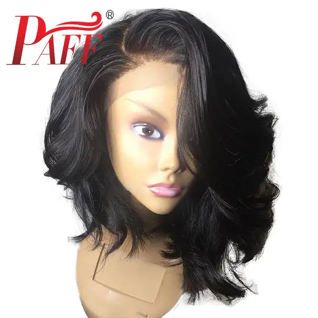 Paff Side Deep Part 13 6 Lace Front Human Hair Short Bob Wigs Wavy