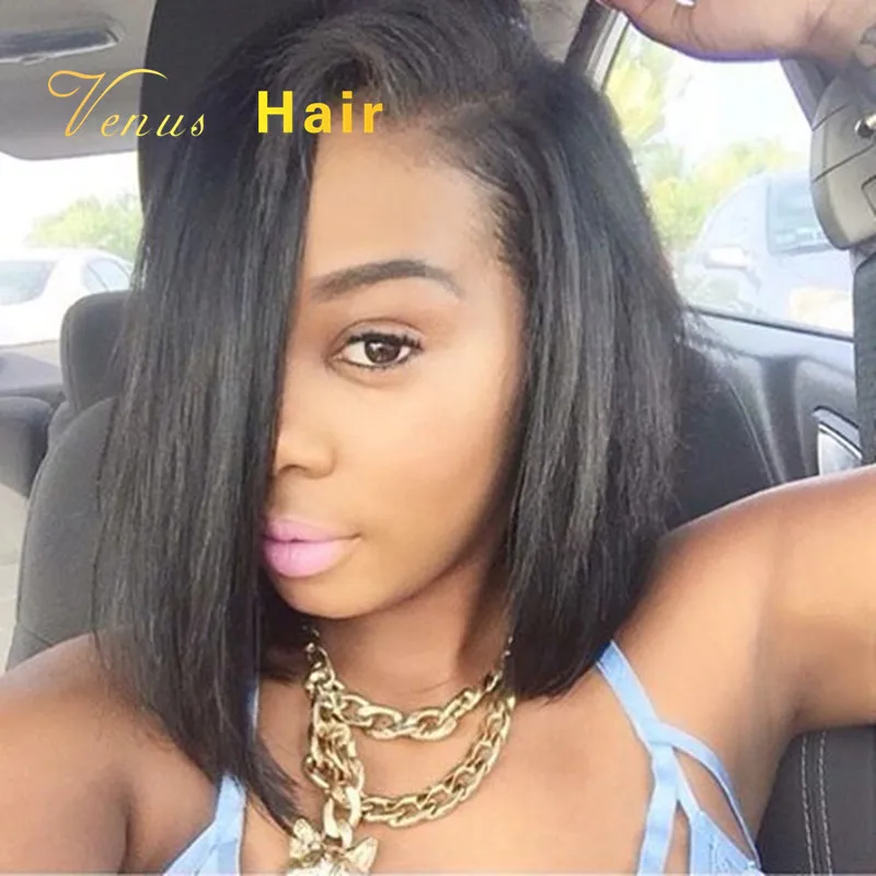 Hot Sale Lace Front Wig Bob Style Yaki Straight Human Hair Side