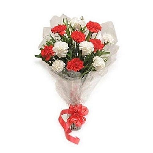 Blooms Bouquet Flower Bouquet 6 Red And 6 White Carnations Special 1 Pc