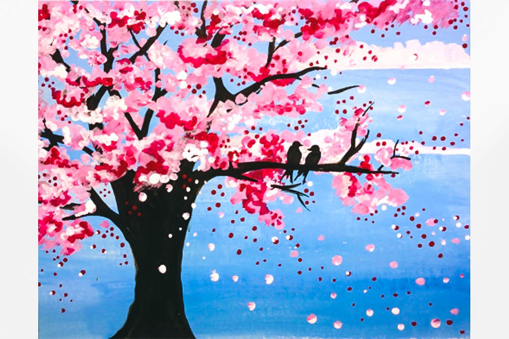Paint Nite Love Birds On Spring Cherry Blossom Painting Classes