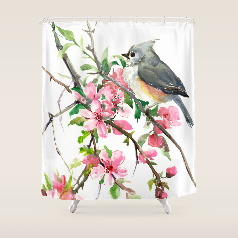 Titmouse And Cherry Blossom Birds And Flowers Design Artwork